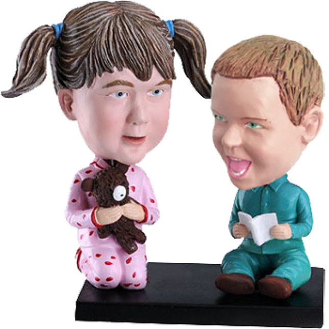 Brother Play with Sister - Handmade Bobbleheads Based on Photo and Ideas - Spcial Gift for Children