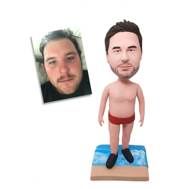 Custom Handmade Polymer Clay Bobblehead Creative Gift Based on Photo: Man in Beachware