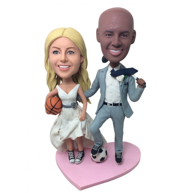 Custom Football Fan Couple Wedding Bobbleheads_x000D_