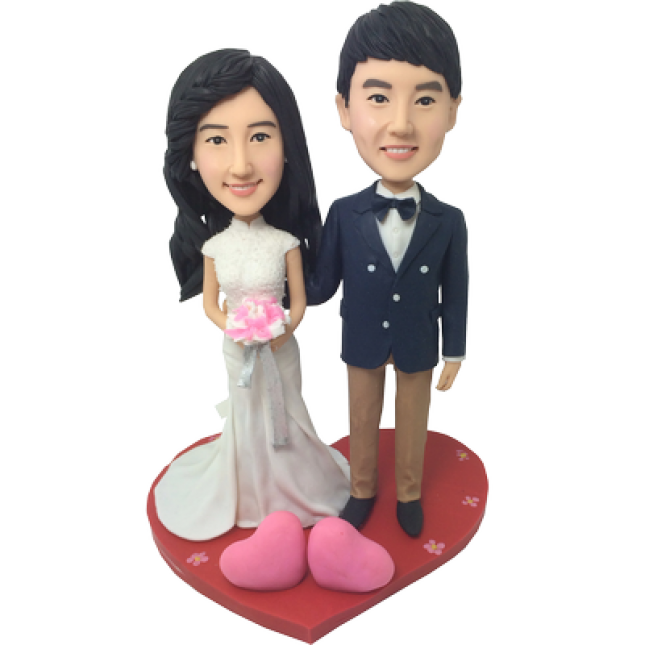 Net weight of a single bobble head is about 0.3 kg and 0.6kg for a couple dolls.