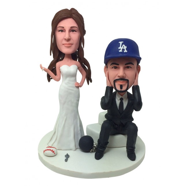 Custom Football Fan Couple Wedding Bobbleheads_x000D_